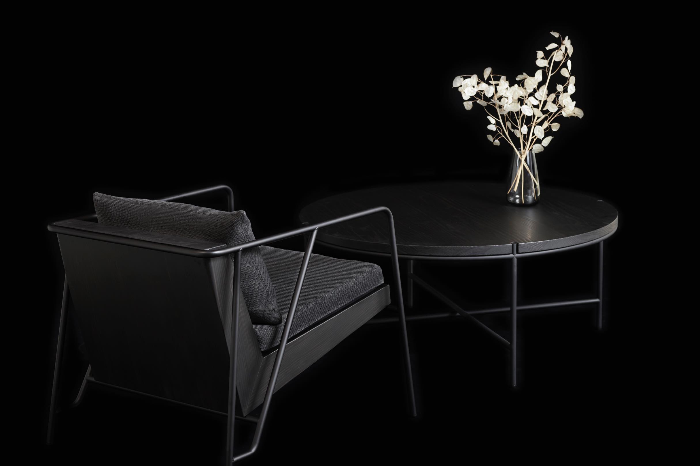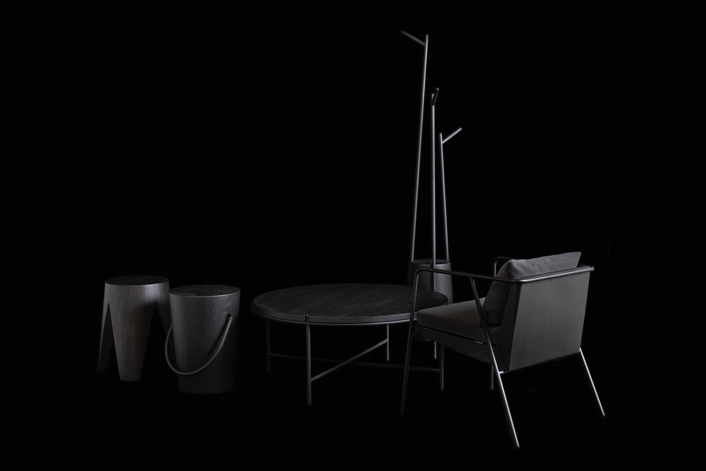 MASS Series ”SUMI LIMITED”は、阿蘇の風物詩 “野焼き”によって生まれる「黒墨色」の景観にインスパイアされた炭化した杉材と、スチールフレームによる異素材のコントラストをテーマにしたコレクション