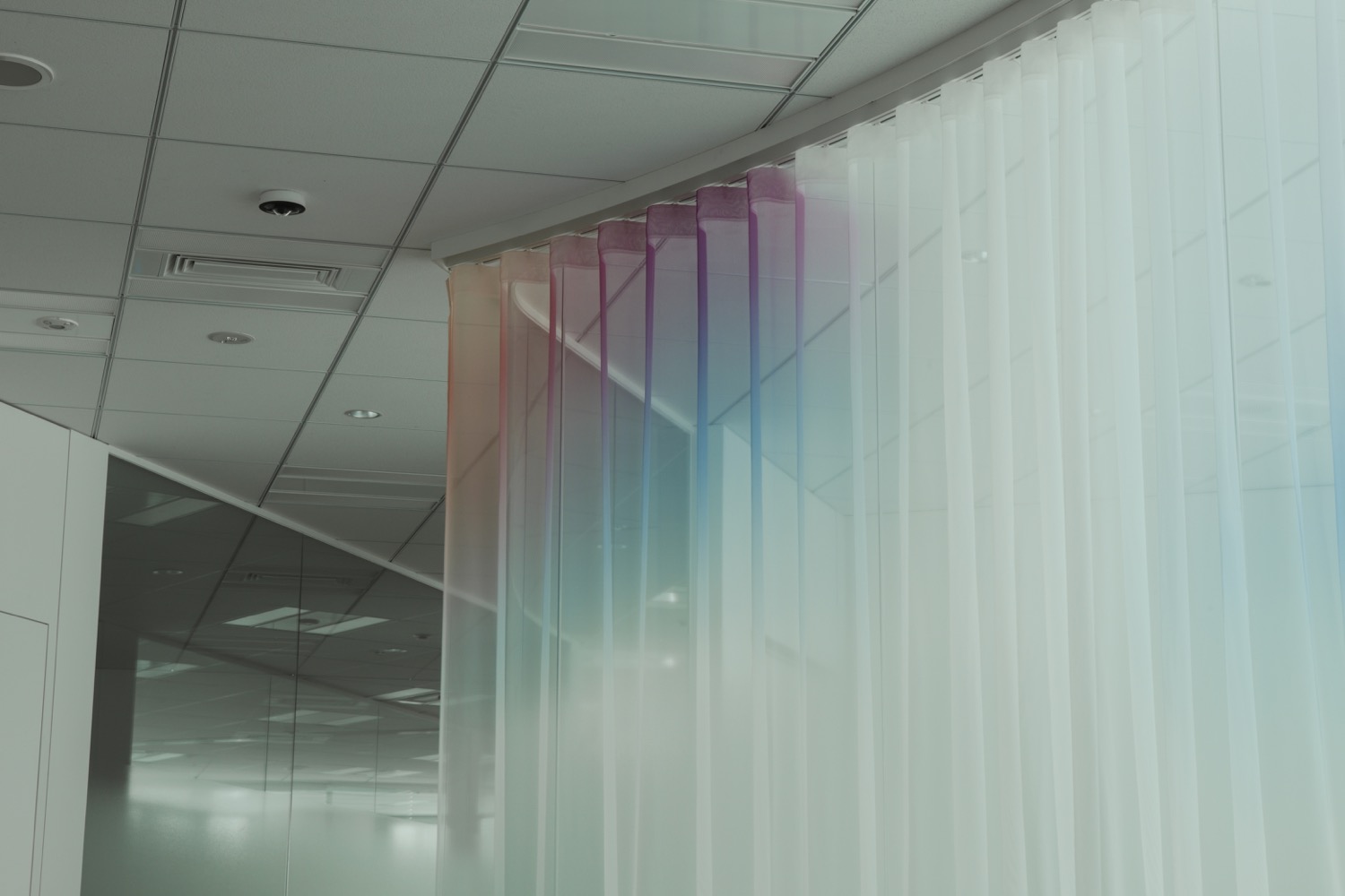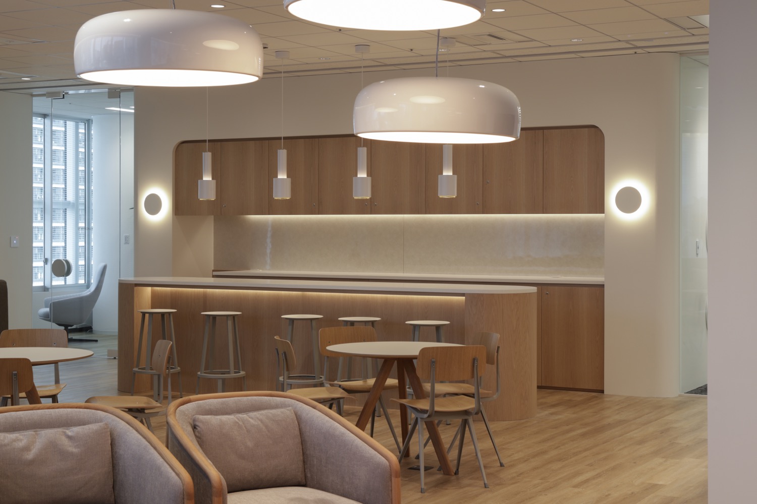 エントランスでは、ミッションとバリューを直感的に伝える場として、光の多彩な色や現象を活かした象徴的な構成を採用。一方、ワークスペースでは個人の裁量を尊重し、学び・思考・議論から生まれる「熱量」をエネルギーとして捉え、それが自然に発生・共有される配置計画とした。生活動線上にはラウンジ機能を設け、チームを越えた交流や偶発的な対話が生まれる場を意図している。