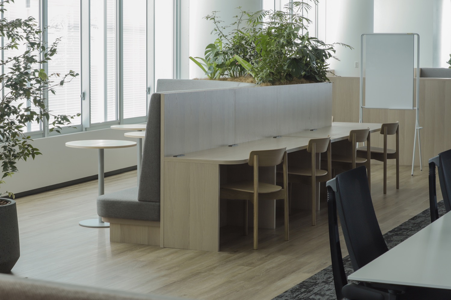 The entrance area is designed as a symbolic space that intuitively communicates the company’s mission and values, utilizing the diverse colors and phenomena of light. In contrast, the workspace emphasizes individual autonomy, interpreting the “heat” generated through learning, thinking, and discussion as a form of energy. The layout is planned to allow this energy to emerge and be shared naturally throughout the office. Lounge functions are placed along daily circulation routes, intentionally creating opportunities for cross-team interaction and spontaneous dialogue.