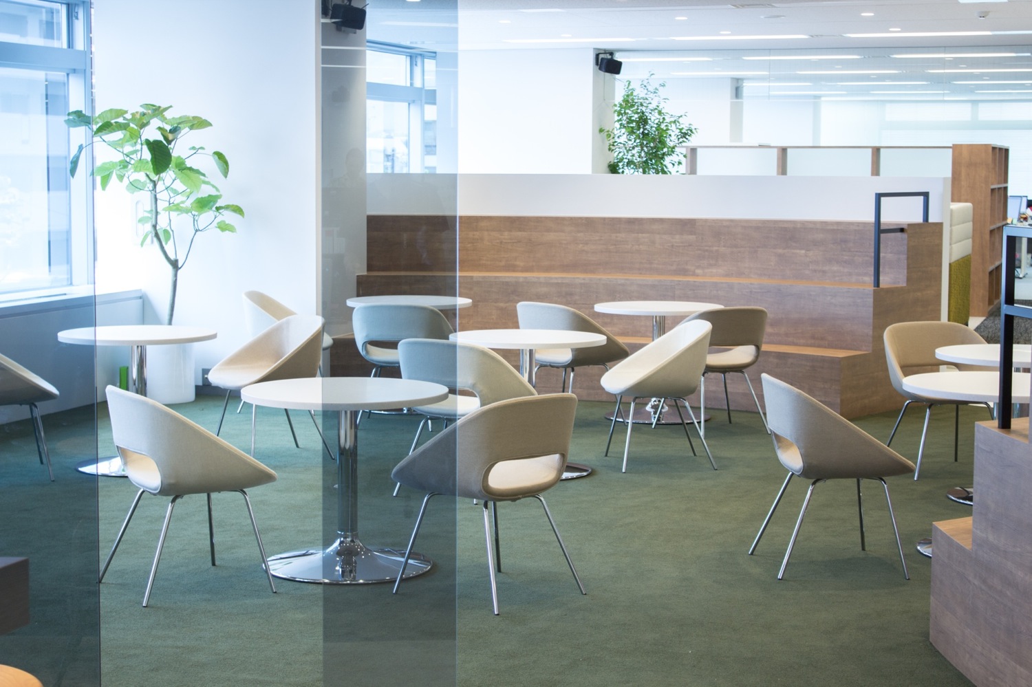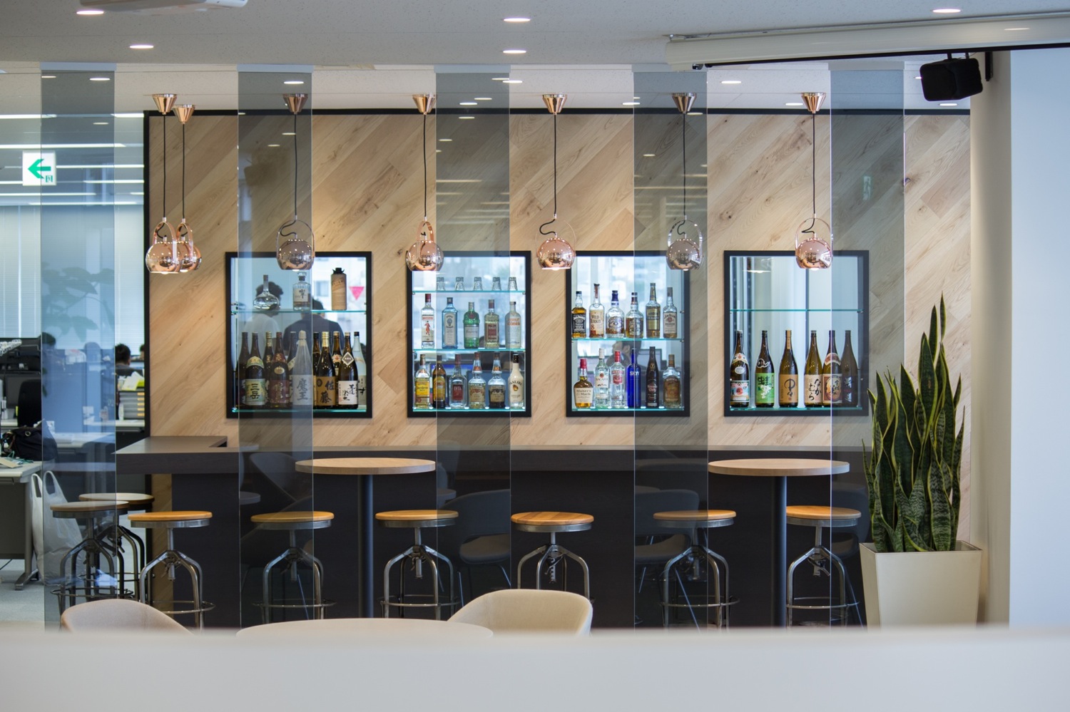 ネントリーズ株式会社は社内イベントや部活動が盛んで、部署間を越えた関係が既に出来ている。社員一人一人がよく見える透明感がある様な社風である。その関係性をより高めるため、オフィスの中心にはリラクゼーションスペースやカウンターバー、セミナースペースを集約し、あえて動線上に絡めたレイアウトにした。