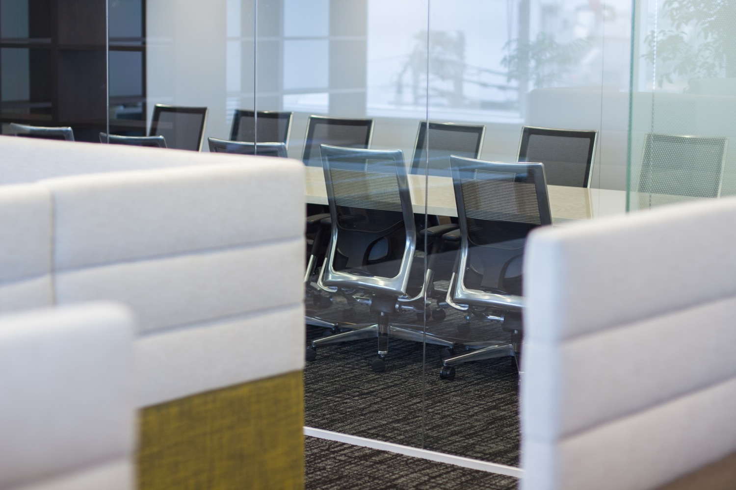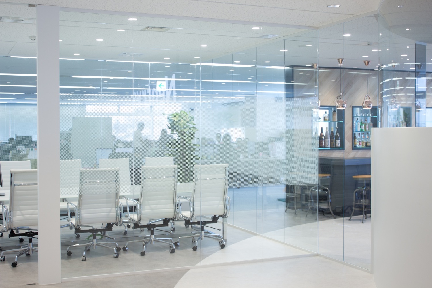 エントランスから執務、会議室に至る所まで、空間の空気が全て繋がっている透明感と、社風である人との距離の近さとが共鳴するデザインとなっている。