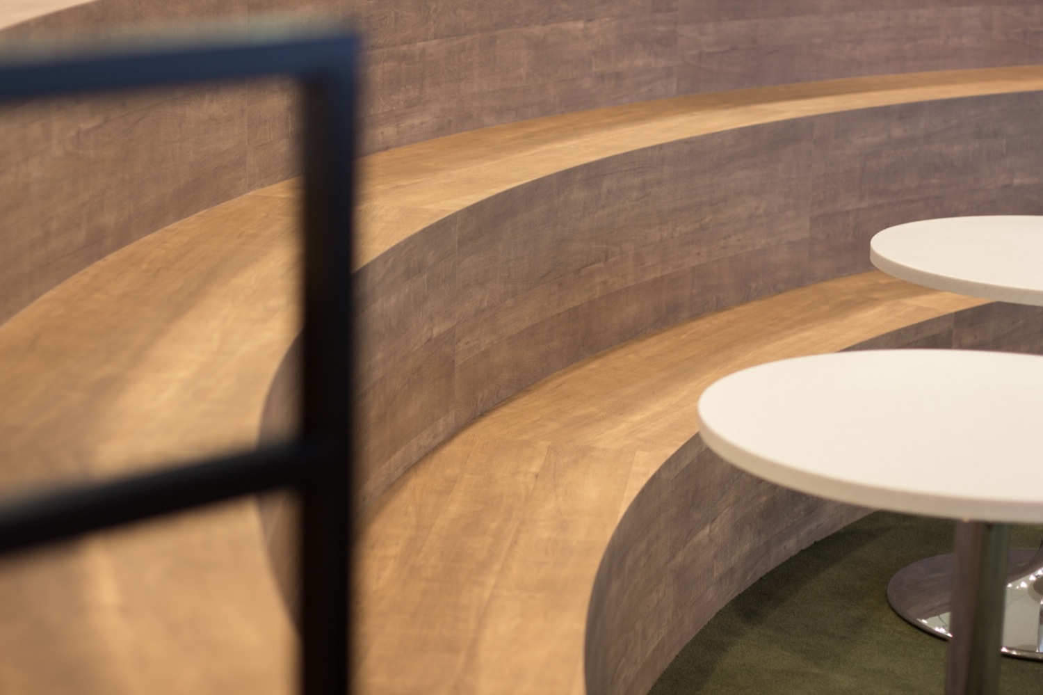 The office they have moved into spans four floors. The building is in a residential area, with no obstacles and a good view, and the entrance room exploits that view to the fullest.