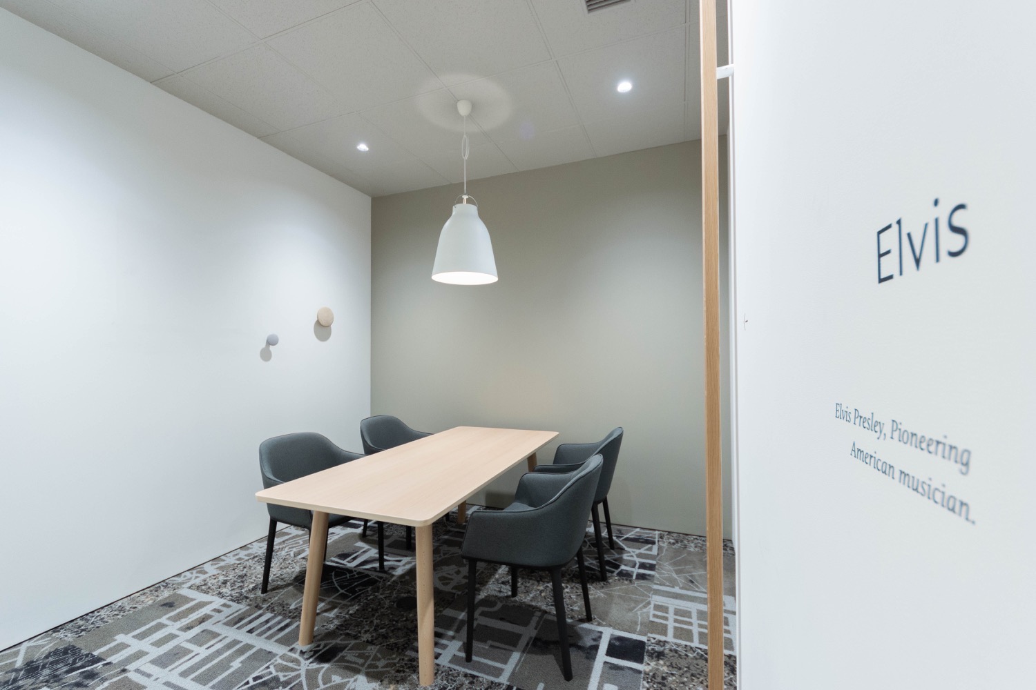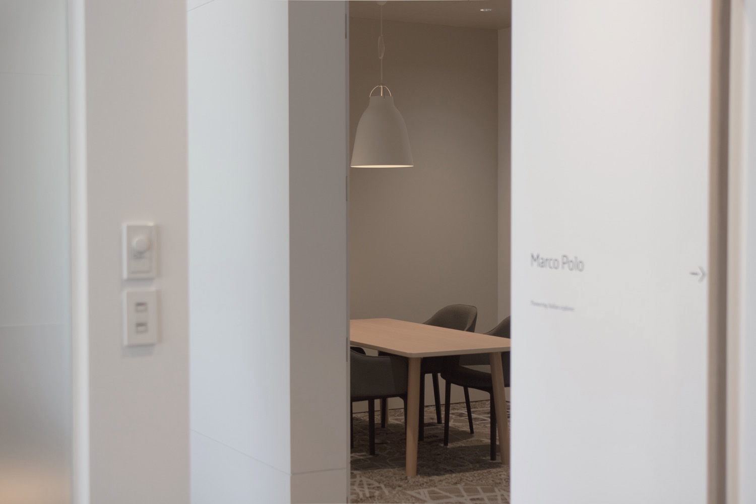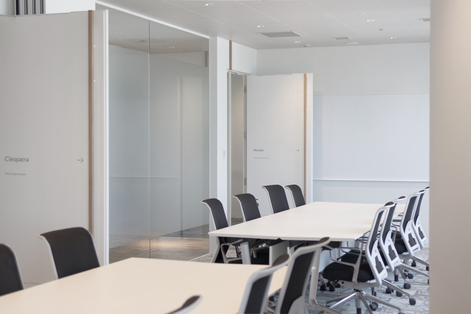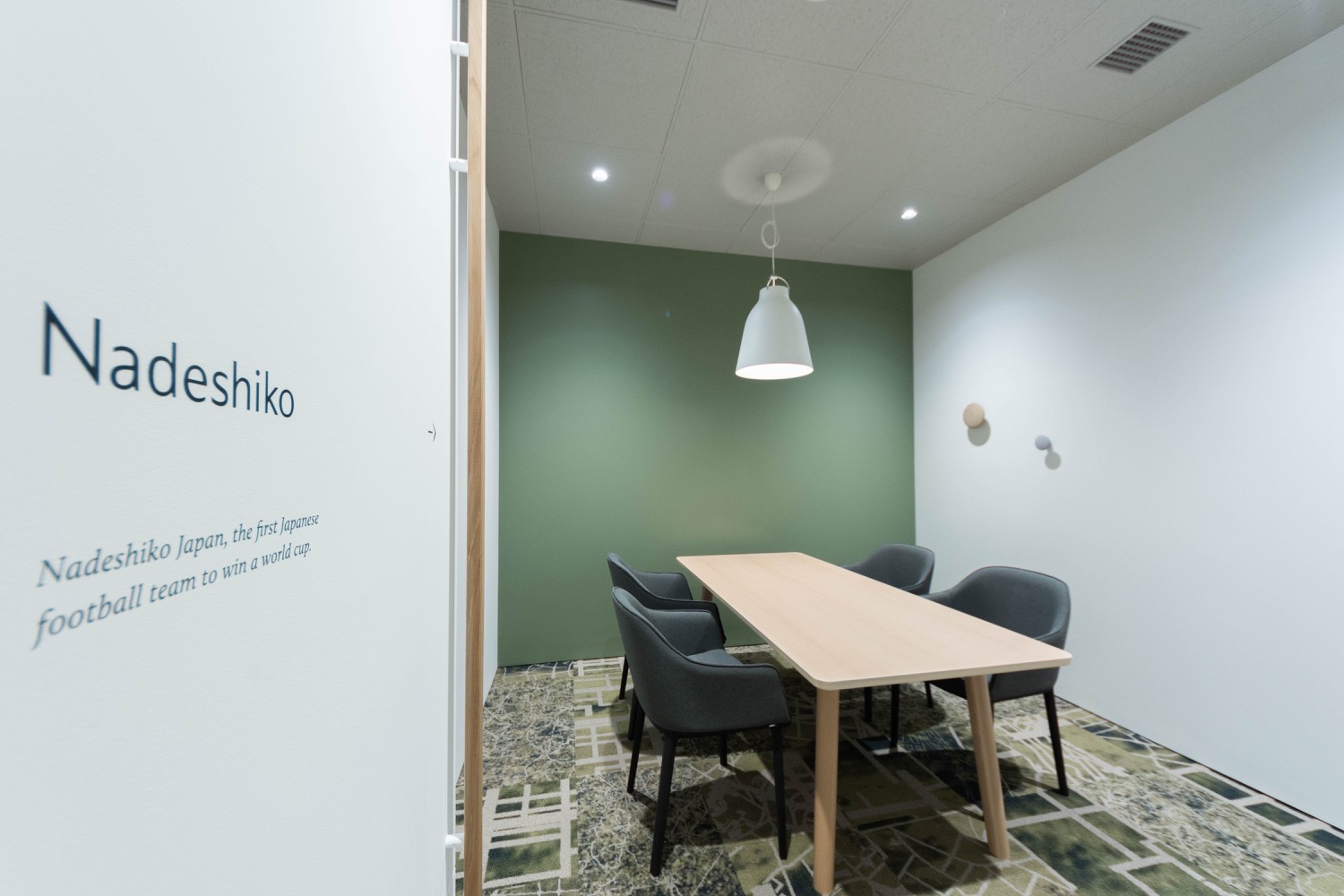 Meeting room floors are covered in graphic design carpets with an urban theme. As a company which connects people all around the world, as well as “people and opportunities”, “present and future”, and “here and the world”, the design also nods to the Recruit brand’s global perspective.