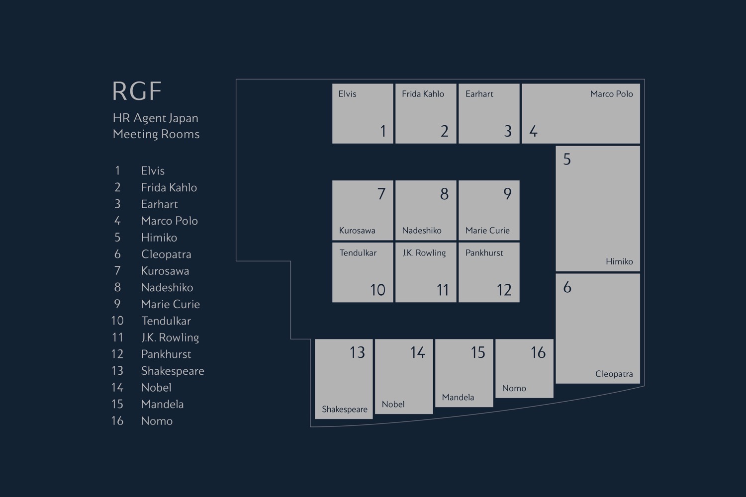 RGFは転職活動者に対し、職種及び業界に精通し 、経験と知識を備えたコンサルタントがサービスを提供しているグローバル企業。リクルート社のブランドが持つ信頼感と、グローバルな視点を持って業界を橋渡しする高い専門性を、来訪者やワーカーに意識づけるオフィスデザイン構築することがミッションであった。