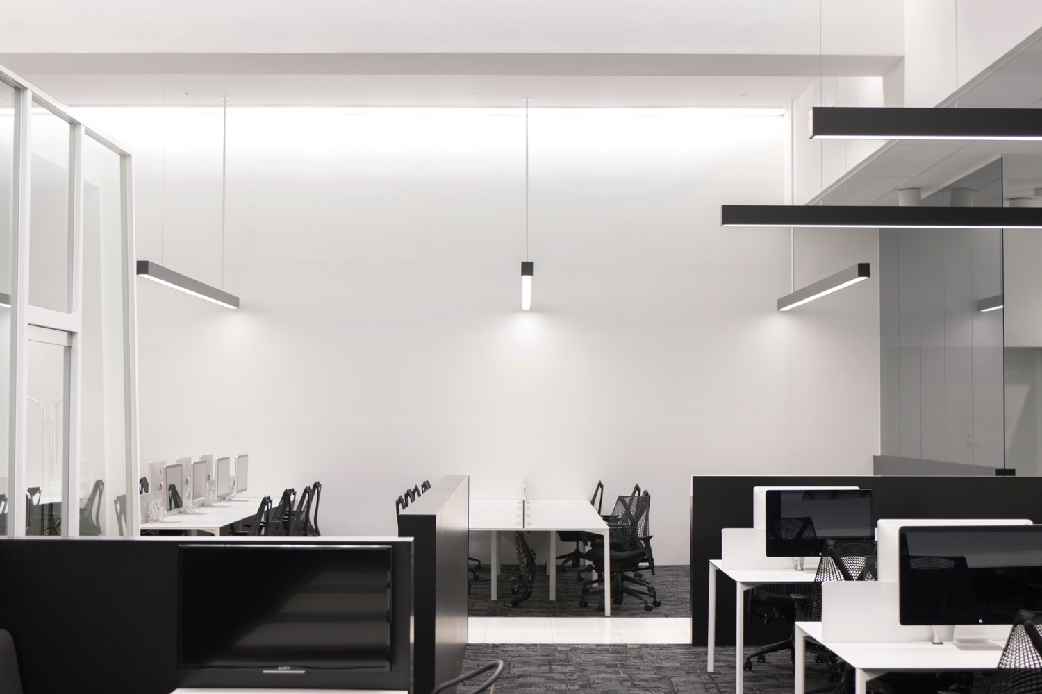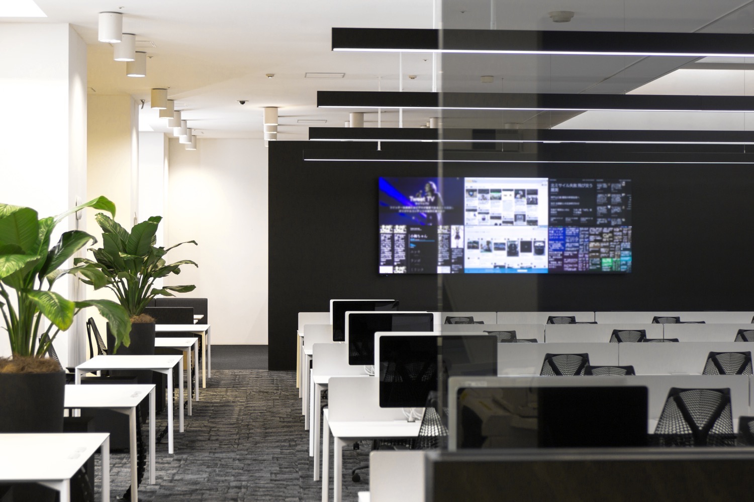 ブランドトーンに合わせた意匠とレイアウトでクリエイターのマインドセットを作り、創作環境としてはモノトーンでニュートラルな環境を求めたデザインとなっている。
