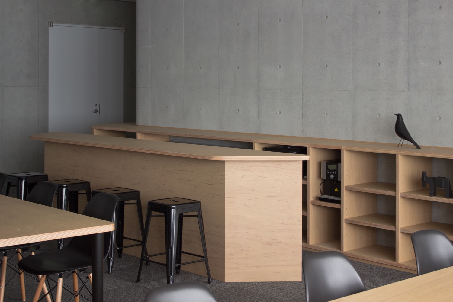 The collaboration area visible from the entrance is toned down overall so as to draw attention to people’s presence and movement, and the original furniture is made to give expression to the wooden materials and with the parts that are touched to have the familiar feel of wood. The furniture has been designed to have variations of things like how they are assembled, so as to accommodate the variety of working styles and moods of the workers.